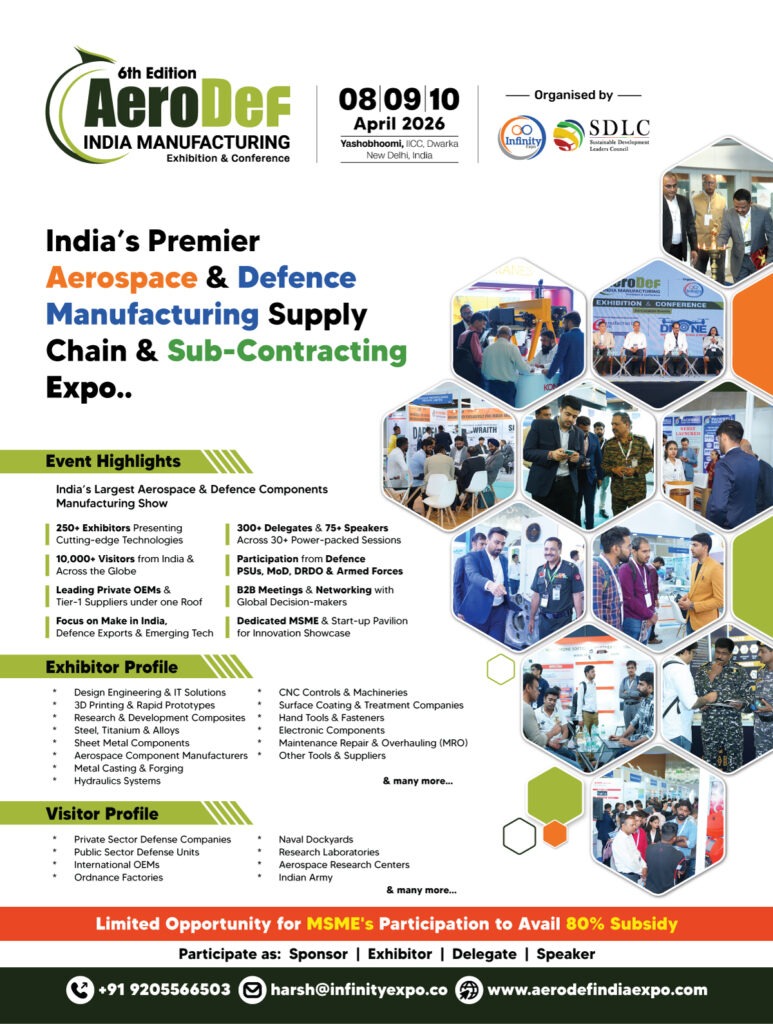 Aligned with the Government of India’s ‘Make in India’ and ‘Atmanirbhar Bharat’ initiatives, ADME 2026 will serve as a key catalyst to strengthen indigenous manufacturing and technological advancement in the aerospace and defence sectors.